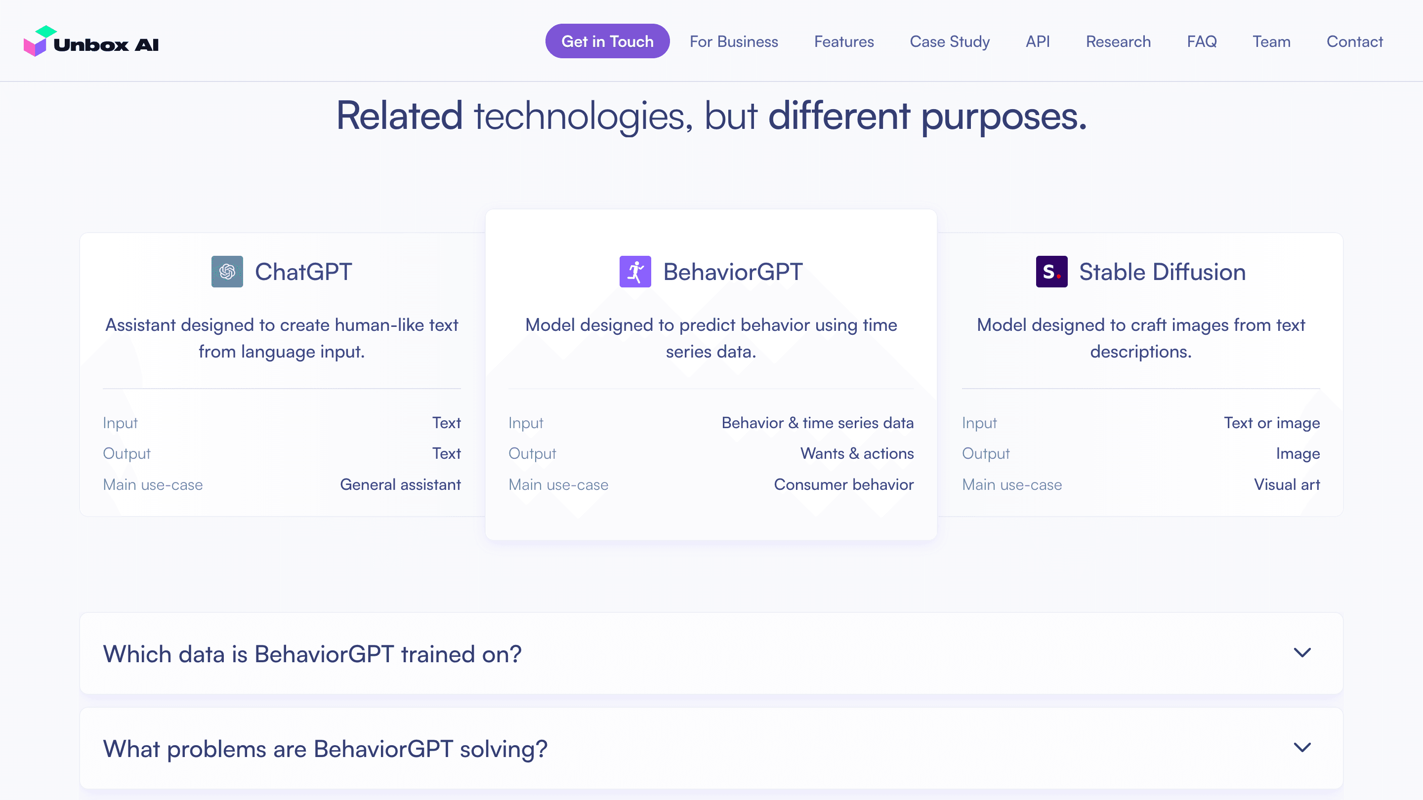 Unbox AI: defining a clear story for an emerging behavior-to-behavior model.